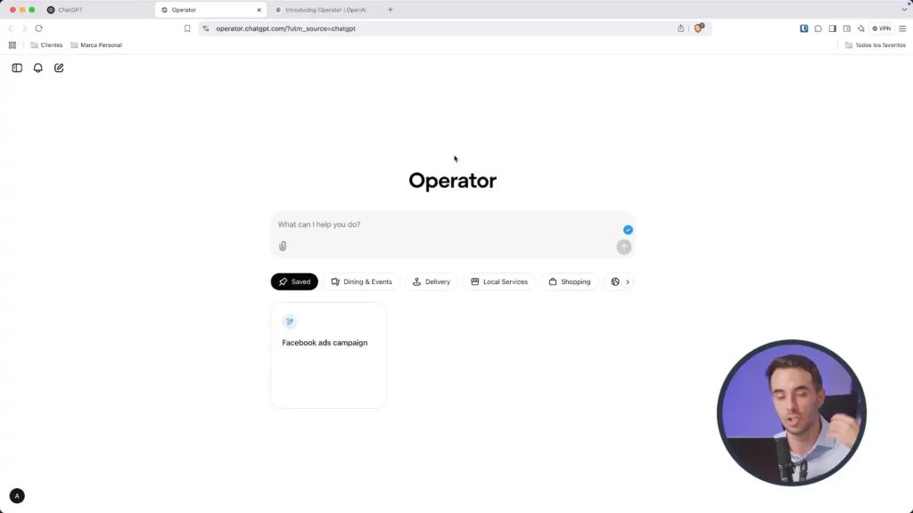Operator es una función innovadora que permite a ChatGPT tomar el control de tu computadora para realizar tareas específicas. Aunque actualmente solo está disponible en Estados Unidos, puedes acceder a ella utilizando una VPN. Con Operator, puedes delegar tareas como la creación y gestión de campañas publicitarias, lo que te ahorra tiempo y esfuerzo.